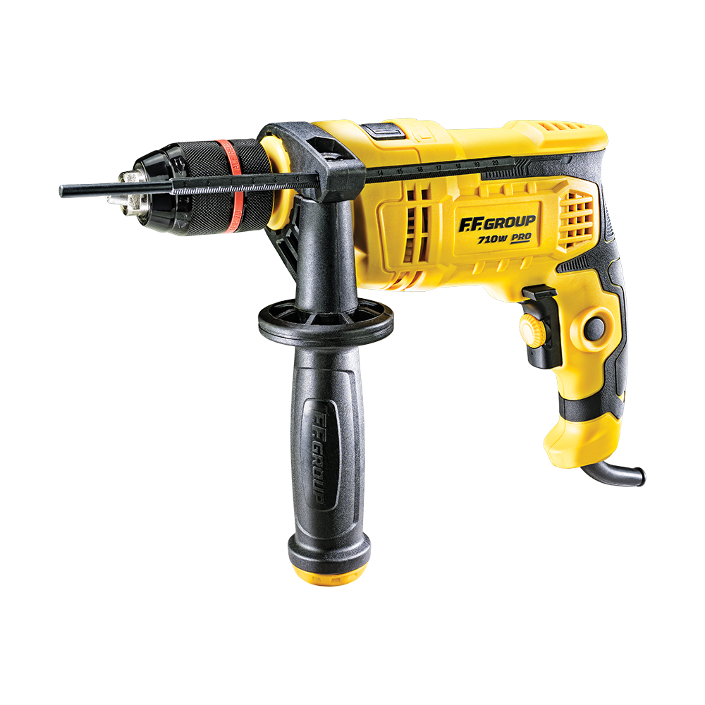 Δυνατός κινητήρας 710W με δυνατότητα ρύθμισης ταχύτητας Λειτουργίες: 1. Διάτρηση, 2. Διάτρηση με κρούση Μεταλλικό ταχυτσόκ 13mm για γρήγορη αλλαγή εξαρτήματος